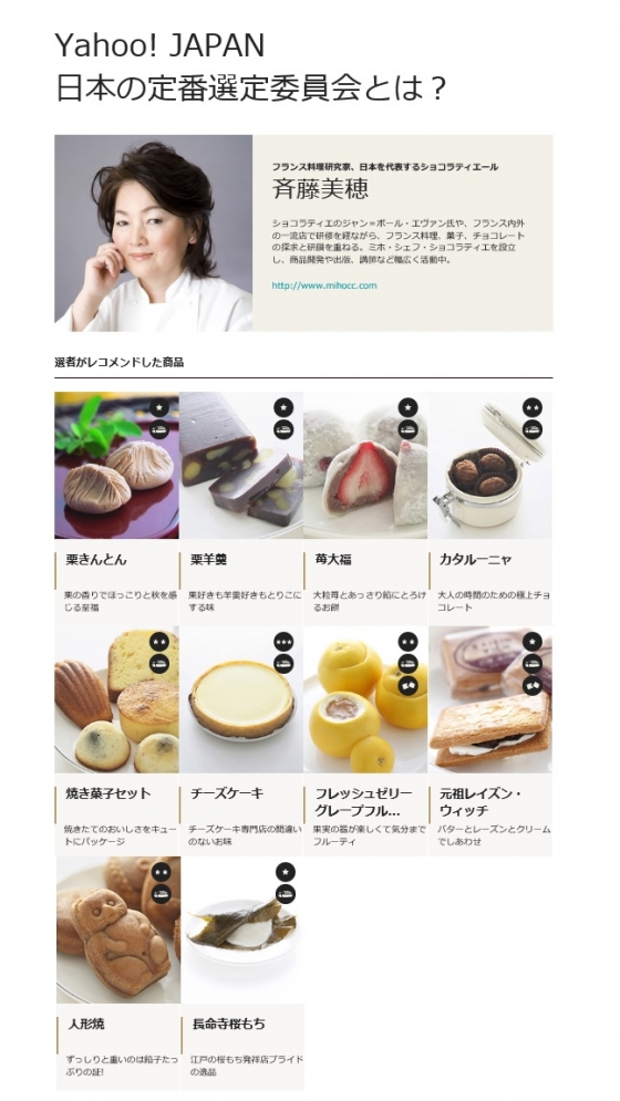 日本を代表する13人の専門家が厳選スイーツをご紹介するYahoo! JAPAN主催の定番選定委員の一人に斉藤美穂が選ばれました。